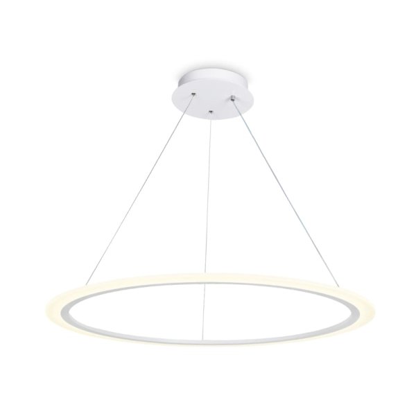 Светильник выполнен из долговечного металла в белом цвете и акрила для плафона, его форма представляет собой эстетичное кольцо, что подчеркивает его уникальность и изящество. Благодаря своему белому цвету плафона и арматуры, он непревзойденно сочетается с любым интерьером, придавая ему современный и стильный вид.