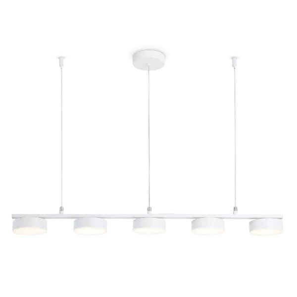 1. Модный дизайн: Пять белых акриловых плафонов круглой формы дополняются белой металлической арматурой, что придает светильнику элегантность и современный стиль.