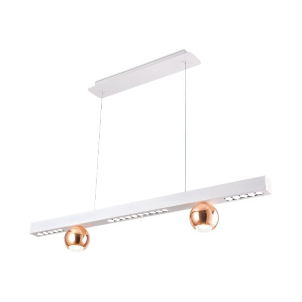 Изготовленный из высококачественного металла, светильник отличается долговечностью и устойчивостью к внешним воздействиям. Плафоны в форме шаров выполнены в роскошном золотом цвете, что добавляет элемент роскоши и благородства, а также превосходно сочетается с белой арматурой, придавая изделию свежий и современный вид. Такая комбинация делает светильник идеальным выбором для интерьеров в стиле хай-тек.
