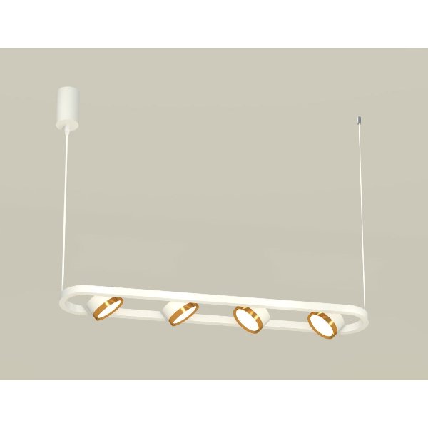 Светильник оснащен четырьмя светодиодными лампами с цоколем GX53, что обеспечивает яркое и равномерное освещение. Золотистые цилиндрические плафоны в сочетании с белой металлической арматурой создают утонченный контраст, который гармонично вписывается в современный интерьер. Металлические элементы подчеркивают надежность и долговечность конструкции, а стильный дизайн сообщает об эстетическом вкусе владельца.